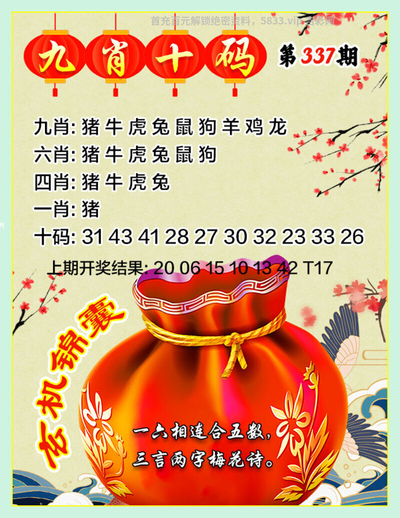 337期:前后3码{后肖主:19.21.23}开:鸡09准